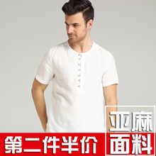圣瑞迪卡中国风男装亚麻短袖T恤复古上衣服短袖小衫半袖男士唐装