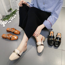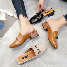 欧洲站大牌包头半托粗跟方头拖鞋女式懒人鞋高跟复古街头休闲鞋潮