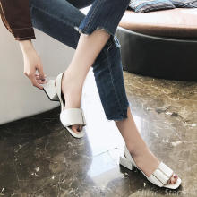 2017夏季方跟粗跟方头凉鞋单鞋中跟方扣露趾浅口学生套脚女拖凉鞋