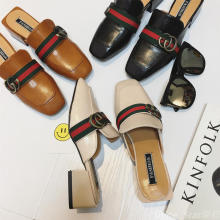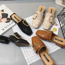 欧洲站大牌夏季新款包头拖鞋方跟皮带扣方头懒人鞋女式学生试衣鞋