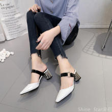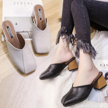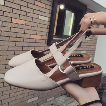 2017新款女鞋高跟鞋尖头半拖鞋女包头粗跟中跟凉拖时尚穆勒鞋夏潮