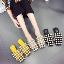 2017夏季新款休闲珍珠百搭镂空包头平底凉鞋学生沙滩拖鞋女罗马鞋