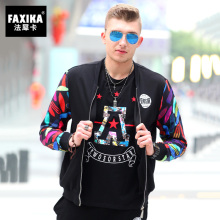 法犀卡胖胖潮星球大码加大加肥男装夹克大号肥佬连帽红色拼接外套