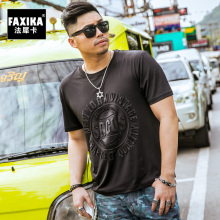 法犀卡潮胖子太空棉字母压花加大加肥大码男装半袖夏季短袖T恤男