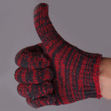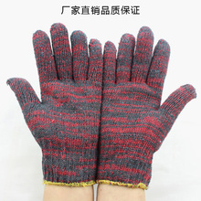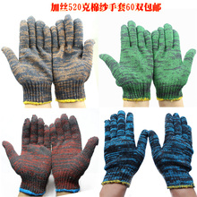 劳保手套直销工作防护手套防滑耐磨红黄绿蓝兰600克花线棉纱手套