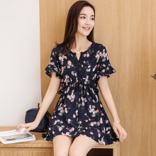 碎花雪纺衫短袖裙摆小衫2017新款夏装圆领韩版打底衫高腰女士上衣