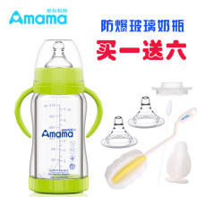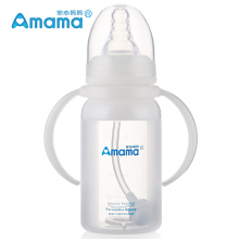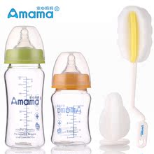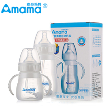 Amama安心妈妈婴儿玻璃奶瓶宽口径带手柄吸管防胀气防爆宝宝奶瓶
