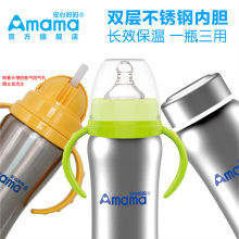 1瓶3用安心妈妈不锈钢保温奶瓶婴儿宝宝宽口带吸管防胀气耐摔奶瓶