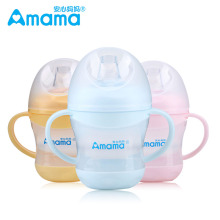 amama安心妈妈自动吸管奶瓶 宽口径带手柄防胀气宝宝奶瓶