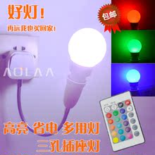 LED无线遥控彩色小夜灯卧室床头灯婴儿宝宝喂奶灯3插插座球泡灯