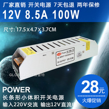 新款长条LED开关电源12V 8.5A 100W灯条灯箱监控12V100W电源变压