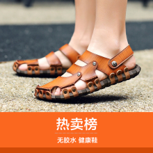 德克森2017夏季新款男士皮凉鞋真皮休闲沙滩鞋露趾耐磨透气男凉鞋