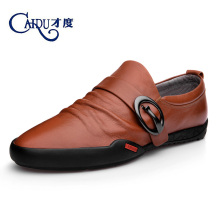 才度春秋新款男士休闲皮鞋驾车鞋 套脚英伦鞋真皮透气男鞋