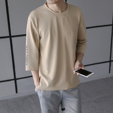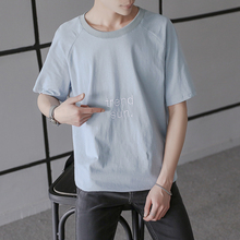 爱穿不穿 2017夏季新款男士韩版圆领潮港风休闲刺绣七分短袖男t恤