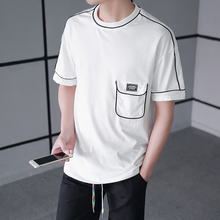 爱穿不穿 2017夏季新款韩版青年男士圆领休闲百搭拼色短袖潮男t恤