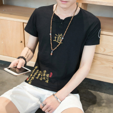 2017夏季新款男士短袖T恤中国风男装潮流刺绣修身上衣半截袖夏装