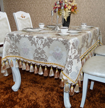 亿得佳缘欧式现代时尚米色咖啡色大提花流苏餐桌布台布茶几布