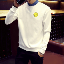 韩版春秋新港仔休闲小清新男士套头宽松卫衣男笑脸情侣棒球服