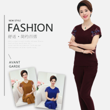 妈妈夏装套装40-50岁夏中年女士印花休闲运动中老年短袖T恤两件套