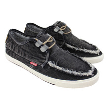 夏季男士低帮系带水洗牛仔英伦风透气帆船鞋牛筋底帆布鞋-SK8006