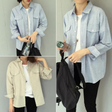 2017春装新款韩版简约棉麻长袖衬衣宽松显瘦衬衫女外套学生衣服潮