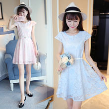 2017小个子夏季新款韩版女装清新裙子夏天修身气质蕾丝连衣裙女潮