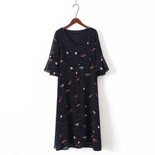 精品单 女装2017新款韩范碎花连衣裙喇叭袖收腰V领雪纺中长裙潮