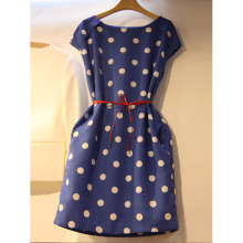 2017韩国时尚韩版波点麻棉连衣裙夏装直筒系带修身A字裙欧洲站女