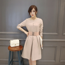 韩版2016秋装新款纯色连衣裙小香风名暖时尚长袖中长款修身女装潮
