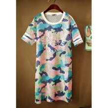 韩国东大门2017夏季新款女装 韩版迷彩镂空短袖宽松中长裙连衣裙