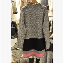 韩国东大门2015秋冬新款中连衣裙 条纹羊绒毛呢显瘦长袖时尚女装