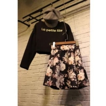 韩国2017春休闲装新款套装 时尚字母印花碎花短裙两件套连衣裙