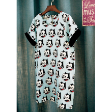 2017韩国休闲夏季新款女装 韩版圆领短袖卡通麻棉印花T恤连衣裙潮