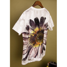 2017韩国夏季新款雪纺上衣 韩版T恤宽松大菊花短袖镂空欧根纱女衫