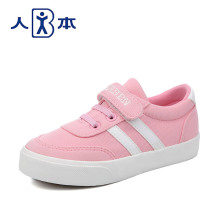 人本儿童鞋低帮透气魔术贴帆布鞋女童男童中大童2017春夏季 板鞋