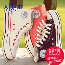 人本帆布鞋男女鞋春秋季学生经典款高帮休闲鞋平底板鞋韩版百搭潮