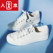 人本帆布鞋女鞋 低帮小白鞋舒适平底护士鞋 韩版潮流休闲鞋女夏季