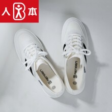 人本帆布鞋女 小白鞋学生低帮平底单鞋情侣款休闲鞋板鞋男 春秋季