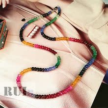 特价天然碧玺盘珠切面彩色碧玺项链 女无染色注胶多层手链