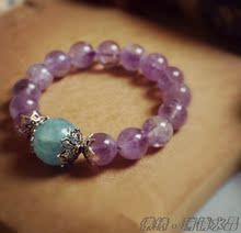 瑞铺水晶天然薰衣草大颗紫水晶手链银 海蓝宝手串 招财转运手链女