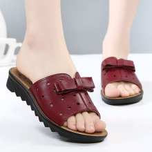 沐奈儿夏季真皮中年女鞋平跟软底妈妈鞋拖鞋防滑平底中老年大码鞋