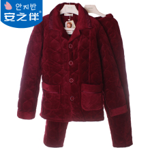 安之伴睡衣2016新款冬季男三层加厚珊瑚绒夹棉家居服套装64F5115