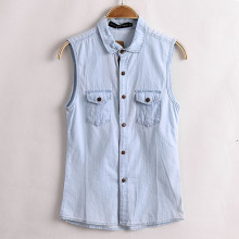 2016夏装新款无袖坎肩牛仔衬衫纯棉小马甲背心女装短款披肩上衣