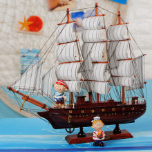 地中海风格木质帆船模型礼品 欧式木船装饰品餐厅店铺摆件摆设