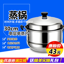 不锈钢蒸锅1层一层30cm加厚复底 家用蒸汽单小两用电磁炉通用