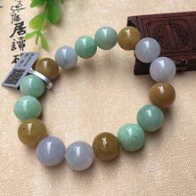 版纳缅甸翡翠A货冰糯三彩13mm手链 天然老坑福绿寿圆珠玉手链手串