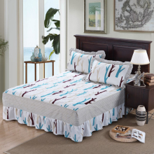 通棉家纺床上用品全棉斜纹印花夹棉床裙纯棉加厚加棉床罩