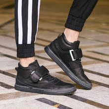 2017春季新款男鞋高帮运动皮鞋魔术贴套脚潮流真皮休闲鞋增高个性