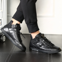 春季牛皮休闲时尚男短靴潮男高帮皮鞋马丁靴透气板鞋潮牌高邦男鞋