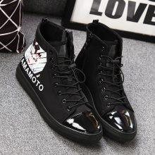 夏秋新款高帮板鞋休闲印花男鞋时尚韩版鞋青春潮流牛皮男鞋